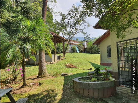 RHBR-15548 (CASA CAMPESTRE) 2 niveles (Carmen de Viboral) MODERNA, CON VISTA, RODEADA DE VERDE, AMPLIA 450 m2 construidos y 7,400 m2 de lote 3 alcobas 5 baños + servicio 2 parqueaderos + 1 útil estrato 4 construido(a) en el 2012 Producto con colega CARACTERÍSTICAS DETALLADAS: Casa con amplio lote 4 habitaciones 5 baños Año de construcción: 2012 Atravesado por una quebrada de agua limpia. Cuenta con un parqueadero muy amplio, garaje cubierto para 2 carros, zona de ropas y cuarto de servicio independientes. El área social es muy amplia, con una sala con chimenea, zona de comedor muy grande y cocina abierta con una despensa independiente. Baño social muy iluminado. Terraza muy amplia e iluminada, con 3 espacios diferentes y asador en acero inoxidable empotrado. Zona de habitaciones con un estudio muy amplio con closet de linos, habitaciones cada una con su baño. La cuarta habitación está en la mansarda, también con su baño y espacio para una sala. Amplia zona verde con casa de muñecas, parque infantil, un quiosco con baño y un invernadero. Zonas verdes y bosque natural. Alarma y cámaras de seguridad instaladas en toda la casa. Ubicada 20 minutos del Carmen de Viboral, 20 minutos de San Antonio de Pereira y La Ceja y 30 minutos de Llanogrande. Es una zona muy tranquila, rodeada de verde, cercana a centros comerciales como Cantarrana, Viva La Ceja y San Nicolás, con una academia de tennis y tiendas a poca distancia.