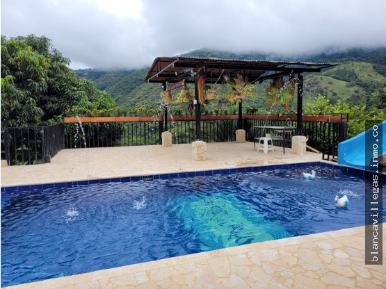 Venta FINCA, Vereda Quimbayo, San Jeronimo. Área: 2.000 mts2 Ubicado a bordo de carretera, cerca de Los Cedros. Via pavimentada. Una finca independiente, en un entorno campestre, con vista a una reserva natural donde se puede disfrutar de hermosos atardeceres. esta rodeada de arboles frutales; guayabas, guanábana, aguacate, zapote, poma, guamá, plátano, banano, murrapos, mangos tomy, mandarina, naranja dulce y agria, papayo, limón. Cuenta con piscina para adultos, jacuzzi, tobogan, juegos infantiles, galpon para gallinas y/o pollos. Tiene agua de EPM, agua veredal, servicios de luz, internet y telefono fijo. Tiene una casa tipica con amplios corredores, sala comedor, cocina integral, 4 alcobas, 2 baños. Recibe como parte de pago casa en Sabaneta, La estrella, Belén. Predial $480.000 anual aprox. Precio $860.000.000 Negociable